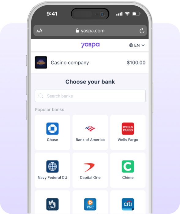 When speed, simplicity, and safety are non-negotiable, Yaspa delivers. Enable players to make deposits with one-time verification that turns returning payments into a single click, backed by 90%+ ACH approval rates to cut churn. Payouts are instant and closed-loop, with withdrawals to verified accounts only – so players get funds fast while operators stay in control.